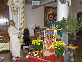 | Reporter: ...about the movement, and it occurred to me...I was wondering if there were any religious people in this country that had any misgivings or thoughts about the trip around the moon. And whether there were any objections or opinions that would run contrary to the usual thought about traveling to the moon, and he said that in some of your recent lectures you had said that man would not be able to land on the moon because of, now these are his words, because of spiritual beings there or that there would be an impossibility or something along that line. I was wondering if you could elaborate on that or explain what you meant. Prabhupada: You are particularly interested with that subject matter? Reporter: Yes. I told Dan that was what I was interested in. I have background information on the movement, for instance, and yourself. Prabhupada: Yes. So far the movement is concerned, it has nothing to do with the moon planetary journey, it has nothing to do. But in the Srimad-Bhagavatam, the authoritative Vedic scripture which we generally follow, in that scripture there is statement that for promoting oneself to the moon planet, one has to accustom himself to the different kind of worshiping process. Just like in the Bhagavad-gita it is stated that yanti deva-vrata devan [Bg. 9.25]. Those who are worshiper of the demigods, they are promoted to different planets of the particular demigods. Yanti deva-vrata devan pitrn yanti pitr-vratah. And those who are worshiper of the pitrs, or forefathers, they go to that planet. Similarly, one who is engaged in worshiping the Supreme Lord, he also goes to the supreme planet. These informations are there in the Bhagavad-gita. And so far moon planet is concerned, that is within this material world. Those who are pious actors, those who are engaged in pious activities according to Vedic rituals, they can go to the moon planet. That is stated in the... Reporter: Those who are engaged in what activities? Prabhupada: Pious. There are two kinds of activities: vicious and pious. Reporter: Pious and... Prabhupada: Vicious. Reporter: Vicious? Prabhupada: Yes. So those who are engaged in vicious activities, they cannot go to that moon planet. And it is also stated that if somebody goes to the moon planet he gets duration of life very, very long period. Reporter: If someone goes to the moon planet... Prabhupada: Yes. He has a long duration of life there in that moon planet. Reporter: I guess I didn't understand. Prabhupada: Just like we are living here at most hundred years, but they can live there ten thousand years. Do you follow? Just like different forms of body have got different duration of life. A dog lives for six years or a cow lives for twenty years, a man lives for hundred years. Similarly, the residents of moon planet, they live for very, very long time, ten thousands of years. Reporter: The residents of the moon live for a long time? Thousands of years? Prabhupada: Thousands of years. Reporter: Now are you talking about... Prabhupada: This information we get from Srimad-Bhagavatam. Srimad-Bhagavatam, this book. I have rendered into English. Reporter: Which book is this? Prabhupada: Srimad-Bhagavatam. Reporter: Was this a book which you wrote or translated or... Prabhupada: Translated and commented. Reporter: Translations and comments. Prabhupada: Yes. Similarly, I have translated this book also. This is being published by Macmillan company, one of the biggest publisher of your country. Yes. I have published this book... Reporter: Were you referring to this book when you meant, when you said residents of the moon, do you mean people that go there to live or that are... Prabhupada: They are there already. In every planet there are living entities, residents. Reporter: And this is written in this book. Prabhupada: Yes. Srimad-Bhagavatam. There is a vivid description of different planets in Srimad-Bhagavatam. There are innumerable planets within this universe and all of them are described in the Srimad-Bhagavatam. The sun planet, the moon planet, and other planets, they are all vividly described, what kind of residents there are, their mode of living, everything is there. Reporter: Now Dan not only said that you said that if people try to land on the moon they would not be able to. Can you explain what you meant by that? Prabhupada: Yes, it is very common sense. Suppose if somebody wants to land on your country, America. You do not allow. There are so many restrictions, visas, passport, and immigration. And how do you expect to land there, all of a sudden there? They are so intelligent and their duration of life so long. They are far advanced in knowledge. Everything they're advanced. So you cannot expect in that way to land there. This is common sense affair. Besides that, the scientists also agree that the temperature there is two hundred degrees below zero, so how you can expect to land there and live there? Reporter: In other words, you don't... How do you yourself feel? Do you feel that if the United States or the Soviet Union were to attempt a landing and their spacecraft went down, what do you yourself expect... Prabhupada: No, so far our calculation goes, from the books, nobody can do so. That is impossible. Reporter: Well, does the book say that it would be impossible for anyone to even approach it? At what point would it be impossible... Prabhupada: Impossible means the process by which you are trying to reach there. Reporter: To live there. Prabhupada: No, to reach there. Reporter: Oh, to leave there. Prabhupada: Leave there and reach there also. Reach. Reporter: Reach, I see. But would the flight that was just completed, that doesn't contradict with anything in this book? I mean they were within, I don't know, so many miles... Prabhupada: But so far we have got information, no flight has been successful to land there till now. So I do not think how they are going to be successful in the future. This process, just like we are going from on