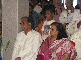 ISKCON Aravade 1 year inauguration festivalGaura Krishna das: As many of you might remember we had the grand and wonderful opening festival of Sri Sri Radha Gopal Mandir here in Aravade on the last Nityananda Trayodasi, 9th of February 2009. ISKCON Aravade 1 year inauguration festivalISKCON Aravade 1 year inauguration festivalGaura Krishna das: Hare Krishna dear Maharaja’s, Prabhus and Friends Please accept our most humble obeisances. All glories to Srila Prabhupada. As many of you might remember we had the grand and wonderful opening festival of Sri Sri Radha Gopal Mandir here in Aravade on the last Nityananda Trayodasi, 9th of February 2009. Now almost one year has passed and we are quickly approaching the next Nityananda Trayodasi which is on the 28th of January 2010. We are therefore cordially inviting you all to please come again and take part in this wonderful festival and get the darshan of Their Lordships Sri Sri Radha Gopal, Sri Sri Gaura Nitai, Sri Sri Vitthala Rukmini and Sri Sri Sita Rama Laksman Hanuman here in Aravade. The celebrations will be on the 26th-27th and 28th of January. We will start with 108 Agnihotras and a great variety of Krishna katha from many Prabhupada disciples and senior ISKCON Vaisnavas. There will also be dramas and many other cultural presentations and on the 28th we will have a grand Abhisekha of Their Lordships Sri Sri Radha Gopal. The 26th is republic day so we are expecting many thousands of guests from near and afar so this is a very good opportunity for every one of you who are in a preaching spirit. Especially on the 28th we are focusing on Nityananda katha and the Abhisekha and that day will be mostly for ISKCON devotees. Should you have questions please contact me and please also let us know if you need our help with your travel arrangements. We really look forward to see you all. Thank you Dandavat Hare Krishna On behalf of H. H. Lokanath swami and devotees of ISKCON Aravade, your servant Gaura Krishna das Grand opening of the Sri Sri Rukmini Dwarakadish Temple at Triolet, MauritiusBy Basu Ghosh Das On Sunday, November 29, 2009, devotees from around Mauritius and around the world gathered for the grand opening and "pran pratishtha mahotsav" of the newly constructed Sri Sri Rukmini Dwarakadish Temple, at Triolet, Mauritius Grand opening of the Sri Sri Rukmini Dwarakadish Temple at Triolet, MauritiusGrand opening of the Sri Sri Rukmini Dwarakadish Temple at Triolet, Mauritius By Basu Ghosh Das [pictures of the function appear on the internet at the dURL, below] http://picasaweb.google.com/basughoshdas1/InaugurationFestivalMauritius# On Sunday, November 29, 2009, devotees from around Mauritius and around the world gathered for the grand opening and “pran pratishtha mahotsav” of the newly constructed Sri Sri Rukmini Dwarakadish Temple, at Triolet, Mauritius. Mauritius is a small island, located in the Indian ocean, some one and a half hours by air, due East of Madagascar. It’s a five and a half hour by flight from Bombay, six and a half hours due South of Dubai, and four from Durban, South Africa! The majority of the population of the over four hundred thousand residents of this multiracial island are descendents of Indian labor that was employed by French landowners in the vast sugar case plantations found throughout the Island. Most of these persons were Bhojpuri speakers (a dialect of Hindi) from the Western part of modern Bihar State. Srila Prabhupada, the Founder-Acharya of ISKCON, visited Mauritius during 1975. The “father of modern Mauritius”, and the first Prime Minister of “free Mauritius”, was the late Dr. Shivsagar Ramgulaam (”Ramgulaam” is “servant of Lord Rama”, in English). Presently his son, Dr. Navin Ramgulaam, is the Prime Minister of Mauritius. Several ISKCON sannyasis, including ISKCON Mauritius GBCs, H. H. Bhakti Chaitanya Swami and H. H. B. B. Govinda Swami, H. H. Navayogendra Swami, H. H. Bhakti Vishrambha Madhava Swami and H. H. Vedavyas Priya Swami graced the occasion. Several disciples of Srila Prabhupada also participated, including Deena Bandhu Das of ISKCON Vrindavan, the “acharya” for the installation ceremonies, Gaur Keshava Das, long serving ISKCON Mauritius temple president Sriniketan Das, native “Franco-Mauritiun” Arjuna Das, and Basu Ghosh Das, temple president of ISKCON Baroda, India. Isvara Das of Touchstone Media at Mayapur and Acharya Samskritananda Hari of the Kaushalya Pitham, Baroda, India were also present. Devotees from the two ISKCON temples at Mauritius were also present as well as hundreds of ISKCON congregational devotees from all over the island. Gaur Keshava Prabhu began the installation rituals on Friday, November 27, 2009, with vaastu puja and jal adhivaas. Acharya Samskritananda Hari performed “rigveda paaraayanam” on that day in the new temple. ” Harinaam nagar sankirtan” was performed in the area near the temple by a group of local devotees. On Saturday, the auspicious day of “mokshada ekadashi”, the day on which Lord Krishna spoke the Bhagavad-gita, five thousand years ago on the battlefield of Kurukshetra, there was complete (all seven hundred verses) Gita Parayanam (recitation) in the new temple room by H. H. Bhakti Vishrambha Madhava Maharaj, Acharya Samskritananda Hari, and others. Gaur Keshava Prabhu continued with the installation rituals. On both Friday and Saturday nights, in a “pandal” (tent) erected next to the temple, after the “bhagavat katha” of Navayogendra Swami, the visiting senior devotees addressed the assembled congregation. H. H. B. B. Govinda Maharaj praised Mukta Purush Prabhu and the devotional minded people of Mauritius in a speech to the assembled devotees. Deena Bandhu Prabhu and H. H. Bhakti Vishrambha Madhava Maharaj also spoke. On Sunday, the “netra unmilanam” (opening of the eyes) for the Deities being installed in the new temple, including Srila Prabhupada’s Deity, was performed. H. H. B. B. Govinda Mah