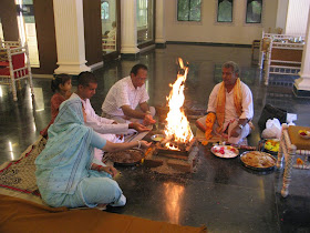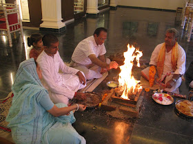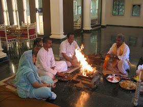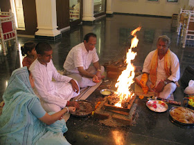 Some pictures of the "havan" (fire sacrifice") held on Dassera day, the day that Govinda's Restaurant was opened here at ISKCON Baroda. Also some pictures of the inside of Govinda's kitchen and pictures of devotees and guests taking prasad at Govinda's.