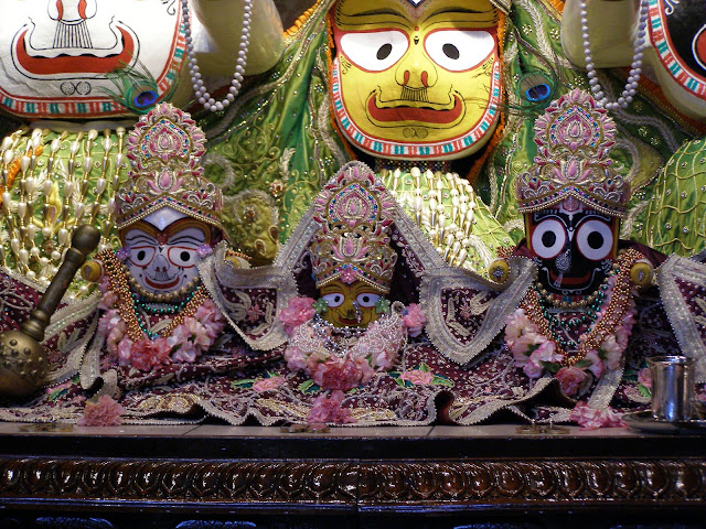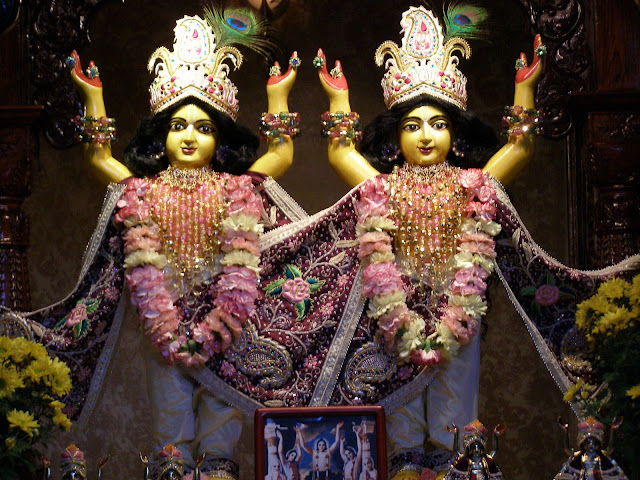 “Mi querido Seïor, algunas de las afortunadas personas que nadan en el oceano del nectar de la devoción por Ti y que saborean el nectar de la narración de Tus pasatiempos, ciertamente que conocen unos extasis que inmediatamente minimizan el valor de la felicidad que se obtiene de la religiosidad, del desarrollo económico, de la complacencia de los sentidos y de la liberación. Devotos tan transcendentales como lo son esos, consideran que cualquier clase de felicidad que no sea la del servicio devocional, no es mejor que la paja que se encuentra en la calle.” (N. de la D. pág. 15)