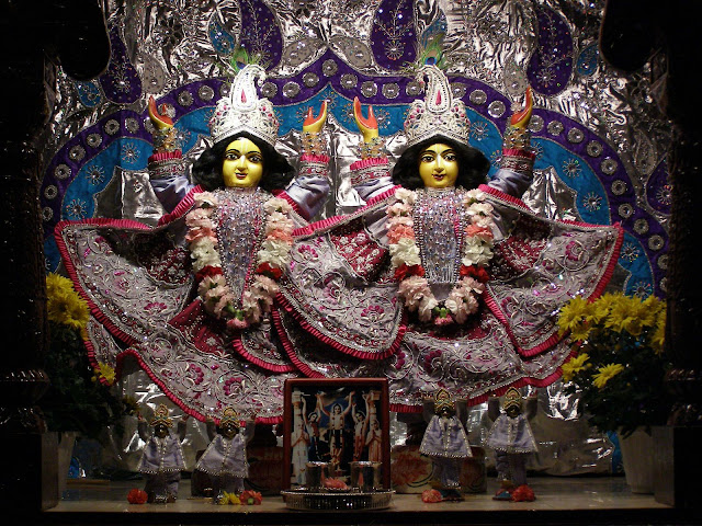 Cuando arribé el último viernes (27 de noviembre del 2009), me aventuré en la noche en un infierno de aire contaminado y aprietos de tráfico pesado para obtener un armonio. Sentado por siempre en una corriente si fin de luces del tráfico, rutinariamente se nos acercaban a nuestras ventanas del carro todas las variedades de vendedores ambulantes y mendigos tratando de convencernos para desprendernos con algo de nuestras rupias. Aun cuando algunas veces damos a los mendigos, uno naturalmente cultiva un poco de indiferencia hacia la solicitud constante. Pero nuestra burbuja de indiferencia fue inmediatamente reventada cuando vimos la vista más iluminadora. Fue un brahmacari de ISKCON vestido de azafrán viniendo junto a la cola de carros atascados ofreciendo una copia del Bhagavad-gita Tal Como Es en cada carro preguntando a todos que compren una copia. Habríamos sido definitivamente clientes si no hubiera sido que ya teníamos muchas copias. Este es el secreto del éxito para la liberación de la humanidad sufriente de la contaminación siempre en incremento de la contaminación e ilusión. Cuanto más Bhagavad-gitas Tal Como Es sea distribuido, más el mundo se volverá transformado del infierno al cielo. Algún día debido a este el movimiento de conciencia de Krishna más maravilloso, esta la ciudad más importante de Nueva Delhi será llenada con aire limpio y con una población poseyendo conciencia limpia, conciencia de Krishna. ¡Que ese día venga pronto!