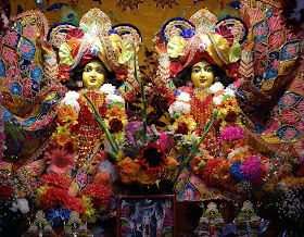 Today is Annakuta Mohotsava, a very auspicious day. This day is observed in India during the month of Kartika. Many of Krsna's other sweet pastimes were also performed in the month of Kartika. In this month, under the guidance of Nanda Baba, the Vrajavasis observed Govardhana puja. They did this having given up the puja of Indradeva, and that resulted in Krsna lifting Govardhana Hill on His little finger. Yasoda-devi bound Krsna in this very month, which is how the song Sri Damodarastakam originated. Kartika is also the month in which Krsna and the gopis performed Saradiya Rasa (Autumn rasa-lila).