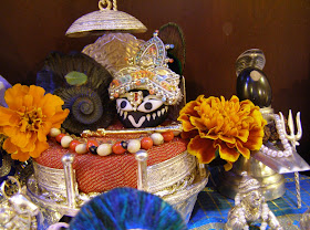 a sound, syllable, word, or group of words that manifest spiritual power when chanted'); return false">mantra, and offered cooked vegetarian and non-vegetarian items. [In fact, the offering of meat to Tara was never bona fide, and was an act performed by so-called brahmans who had departed from strict adherence to the Vedas.]