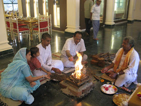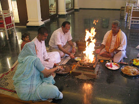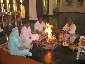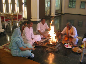 Some pictures of the "havan" (fire sacrifice") held on Dassera day, the day that Govinda's Restaurant was opened here at ISKCON Baroda. Also some pictures of the inside of Govinda's kitchen and pictures of devotees and guests taking prasad at Govinda's.