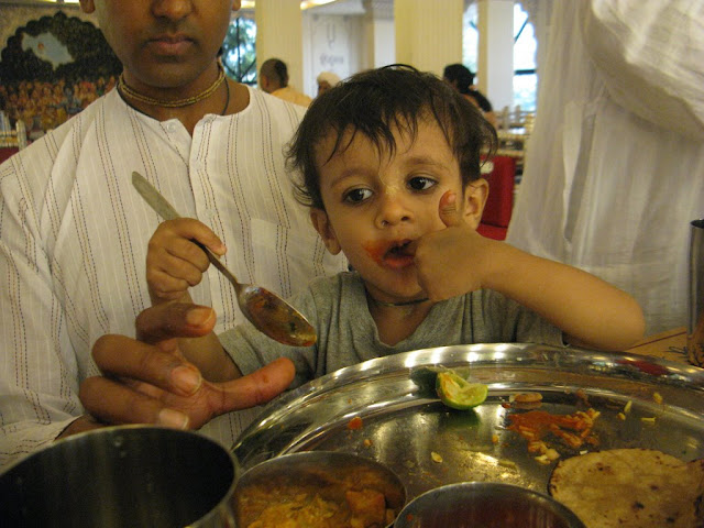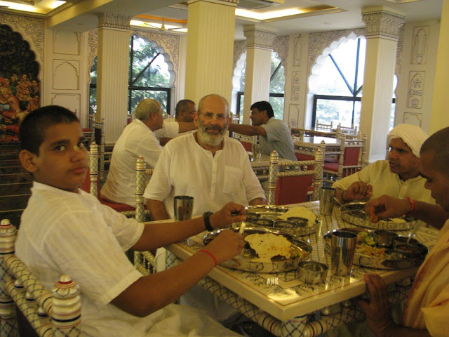 Some pictures of the "havan" (fire sacrifice") held on Dassera day, the day that Govinda's Restaurant was opened here at ISKCON Baroda. Also some pictures of the inside of Govinda's kitchen and pictures of devotees and guests taking prasad at Govinda's.