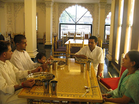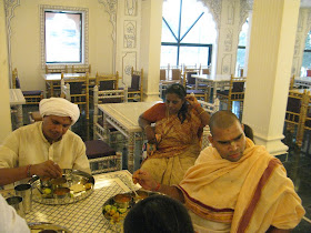 Some pictures of the "havan" (fire sacrifice") held on Dassera day, the day that Govinda's Restaurant was opened here at ISKCON Baroda. Also some pictures of the inside of Govinda's kitchen and pictures of devotees and guests taking prasad at Govinda's.
