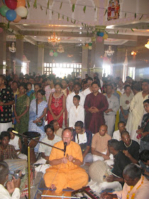 A pesar de que Kåñëa no estaba presente ante ella, Kunté le ofreció sus oraciones como si ella estuviera en Su presencia, cara a cara. Esto es posible para cualquiera que sigue los pasos de Kunté. Kåñëa no tiene que estar físicamente presente en todas partes. El está verdaderamente presente en todas partes mediante la potencia espiritual, y uno tan sólo tiene que rendirse a El sinceramente. (Libro de Kåñëa, Cap. 48, págs. 332-333).