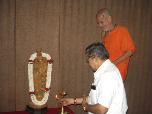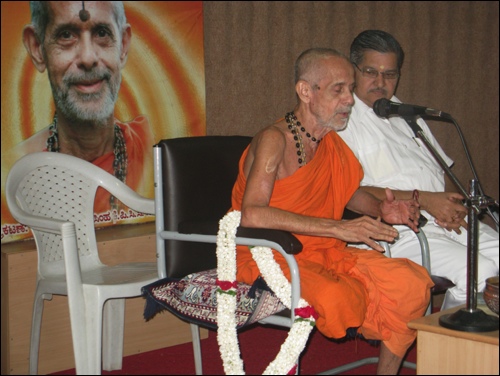 HH Vishwesha Tirtha Swamiji, the head of the Pejawar Math, Udupi, along with the Home Minister of Karnataka, Sri V.S. Acharya, inaugurating the Rashtriya Shastrartha Goshti at the Purnaprajna Vidyapith (Sanskrit College), Bangalore that was held from January 20-22, 2010.