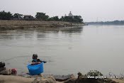 Um dos pontos altos de visitar Mayapur é banhar-se no Ganges, nesse local tão importante. Acima uma cena típica, onde uma pessoa vai ao Ganges para lavar as roupas, tomar banho e lavar a cabeça – tudo de uma vez.