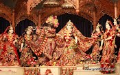 O templo mais bonito de Vrindávana é o nosso, Krishna-Balaram Mandir, estabelecido por Srila Prabhupada. Foi aqui que Prabhupada escolheu abandonar o planeta. Acima a foto das belíssimas Deidades Krishna-Balaram (note bem que era um dia normal – e vejam a opulência da decoração).