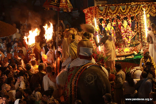 Todo sábado é feito uma procissão com Lakshmi-priya, o elefante de Mayapur, carregando Radha-Madhava (pequenos). Em frente deles segue um carro de boi com Gaura-Nitai e Srila Prabhupada. É um evento muito bonito.