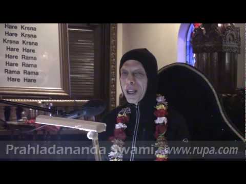 Srila Prabhupada's Letters1966 May 19: "Amavasya. Paul paid $2.00 for Expenditure. Today one letter received from Mr. Paul C. Sherbert and he is replied also." Srila Prabhupada's Letters1971 May 19: "So far your questions, the demigods are having fair complexion with golden hue. Golden means milk mixed with a tint of reddish or yellowish color. Garuda is yellow in color; Kalki is bluish. Matsya is a full fish, bluish in color. Kurma is tortoise color." Srila Prabhupada's Letters1972 May 19: " I am coming to London and if you like perhaps I can come to Amsterdam also if there is sufficient engagement. I like that country very much, there are many cows so if you can arrange some big engagement there then I shall gladly come. At that time we can see about installing Lord Jagannatha." Srila Prabhupada's Letters1972 may 19: "I am giving them the sannyasa order of life and you may also come here and see me. However, there is certainly no urgency for taking sannyasa. But if my senior disciples wish to take sannyasa then I shall give it." Srila Prabhupada's Letters1972 May 19: "Now you must do the work that I am doing. This traveling extensively is for the GBC men, just as I am doing it. Traveling and preaching, that is the Sankirtana movement. But now I am old man; let me retire for writing books in my last years." Srila Prabhupada's Letters1975 May 19: "Find enclosed copy of draft agreement with my corrections. The money requested can be paid, but unless there is solid transfer of land how can we invest? Immediately send me copy of original trust document. After I have examined it, I will give my further instruction." Srila Prabhupada's Letters1975 May 19: "Continue your drawing work nicely. This is your business. Krishna has given you special talent and you are using it for spreading His glories. This is wanted. I will be arriving soon and at that time I can see you and we can talk sometimes." Srila Prabhupada's Letters1975 May 19: "Our real business is to print and distribute my books. By doing this business you will all become recognized by Krishna. Make your program simple - always make sure that you are somehow or other engaged in Krishna's service and the best service is preaching or engaging others in Krishna's service." H.H. Prahladananda Swami: Lecture – SB 8.22.4 Kind Encouragement – VideoLecture on Srimad Bhagavatam, Canto 8, Chapter 22, Text 4 by Prahladananda Swami. Dallas, TX TRANSLATION Although a father, mother, brother or friend may sometimes punish one as a well-wisher, they never punish their subordinate like this. But because You are the most worshipable Lord, I regard the punishment You have given me as most exalted. PURPORT Punishment meted out by the Supreme Personality of Godhead is accepted by the devotee as the greatest mercy. tat te ‘nukampam susamikshamano “One who seeks Your compassion and thus tolerates all kinds of adverse conditions due to the karma of his past deeds, who engages always in Your devotional service with his mind, words and body, and who always offers obeisances to You is certainly a bona fide candidate for liberation.” (Bhag. 10.14.8) A devotee knows that so-called punishment by the Supreme Personality of Godhead is only His favor to correct His devotee and bring him to the right path. Therefore the punishment awarded by the Supreme Personality of Godhead cannot be compared to even the greatest benefit awarded by one’s material father, mother, brother or friend. PAS_SB08.22.04_KindEncouragement_2009-12-03 ISKCON News.com: Meet Spider Goat - The Future Solution for Broken Bones