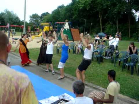 Thursday 29th, July 2010. I awoke, feeling some new energy. I helped in the breakfast endeavours for the VIPs. Mostly, I was making herbal tea for all the kirtaneers. I was now Tea Boy. I thought this was Krsna's ironic sense of humour because I never used to drink tea or coffee, only rarely the herbal tea, so now Krsna was allotting me the karmic prerequisite of tea making, so that I could burn it off before returning to Goloka Vrndavana. I found myself in the VIP room, yet again, lending my computer to Gaura Hari and Madhava. Now the rolls switched; they sat me down to my VIP Prasadam and presented me with various edible gifts. Gaura Hari gave me a milk sweet and Madhava gave me a calzone, that he had brought with him from Switerzland. It was a mini feast for me, while we talked about various subjects in a relaxed atmosphere. I helped Dhira Mata a little with lunch Prasadam for the VIPs. Mostly I helped her transport it to the car, crate after crate. We had a French couple who were driving us in their own car and we struggled to fit everything in, because there was so much Prasadam. As we passed the Prasadam truck, on the way out, I saw a strangely familiar face. I was not sure if my eyes were deceiving me so I forgot about it altogether. We arrived and I had to take a walkabout to find our VIPs. I bumped into Caitanya Vallabha, for the first time this tour, and said a quick, warm Haribol before I had to rush off on my business. Eventually we had everyone together and I helped serve them lunch Prasadam, which was a load of fun on its own. I had to find someone to help me wash the dishes. I began to walk around the site and I found Radheya. With Radheya was the same familiar face I had seen in the Prasadam truck. I presumed it was Yogananda, a Gurukuli boy from LA, whom I had been in contact with for a long time, but I was too shy to ask it straight. It happens so much, while preaching, that you see a face and just cant pick it, or if you do pick it you're too worried you'll simply guess wrong. This time I was right but I wanted to be 108% sure. Once proper introductions were in order, I had the two of them help me wash the dishes and we had a load of fun. We held up a whole wash bay and fended off Vaisnavas from the sinks with various strategies. Patita Pavana Prabhu and his wife arrived. I considered it my duty to go and check on them, so I found them in their tent. They instantly asked if I could help them have their tent moved. I was in the site shed, moments later, arranging a relocation with Dominik. We had a whole tent crew and a nice table cloth, from our shops, and we located them to somewhere quiet and shady. Navina came in and hooked them up to the power. They instantly started calling in devotees to do their charts. The VIPs were working their way over Woodstock, sharing their magic. The year's festival was totally packed and the devotees were all engaged. Caturatma Prabhu had a large crowd, as he talked away some Salagram nectar; Madhava was in the kirtana, cooking up a storm; and BB Govinda Maharaja was just arriving, sending cheers and excitement around the camp. That night Krsna's Village of Peace was officially opened by the Woodstock organizer, Jurek Owsiak. He came on our main stage and loudly voiced his approval of our celebrations. Appropriately, Village of Peace (the band) began to play their Krsna conscious reggae music off into the evening. The crowds danced in appreciation and soaked in the spiritual sound vibrations I caught an early bus home, reserving myself for the following three days of Woodstock. Although our arrangements were well on the way, Woodstock hadn't even started yet. We were soon to have three awesome, action packed days of Woodstock madness, not available for experience anywhere else in the world. This was the real yajna in Poland. [http://maddmonk.wordpress.com/2010/08/08/p15-opening-of-krsnas-village-of-peace-at-woodstock-2010] • Email to a friend • •Krishna-kripa das, Mayapura: Travel Journal#6.12b: English Festivals and Netherlands PadayatraDiary of a Traveling Sadhaka, Vol Diary of a Traveling Sadhaka, Vol. 6, No.12b English Festivals and Netherlands Padayatra (Sent from Hamburg, Germany, on August 8, 2010) Highlights Insights from Srila Prabhupada, Jayapataka Swami, Candramauli Swami, Jayadvaita Swami, Janananda Swami, Bhakti Nrsimha Swami, and Others Where I Went and What I Did During the brahmacari convention at the Manor, I went with the other brahmacaris to the London Ratha-yatra, but I also skipped out to do a couple of additional festivals, the Borehamwood Ratha-yatra and Stonehenge Solstice Festival. After the convention I hoped to go to the famous Glastonbury Festival, where the devotees distribute prasadam and perform kirtana for a crowd of tens of thousands of people, but tickets were limited, and I did not have enough influence to get one. It made me grateful to Indradyumna Swami and Punya Palaka Prabhu that at least I am allowed to go to festivals like the Polish and Czech Woodstock. Instead of Glastonbury, I stayed with the Soho Street devotees and did harinama in Central London. Monday morning, before leaving for Radhadesh to join the Netherlands Padayatra devotees, we had a final harinama in London. Originally only three devotees wanted to go out, but when Maha-Visnu Swami decided to come, the number swelled to about twelve, and he enlivened them all by his enthusiasm, devotion, and his accordion playing. I felt happy that he was willing to come on my request and inspire many others to come out, and he was also happy that he came. One Saturday each year, the community of Borehamwood, not far from Bhaktivedanta Manor, has a parade about two hours long in which the devotees, headed by Parasurama Prabhu, have a cart bearing Sri Sri Gaura-Nitai. Devotee kids dressed as peacocks this year. One motorized vehicle pulling the cart was decorated like an elephant. One devotee played a full drum set on another vehicle. Govinda 