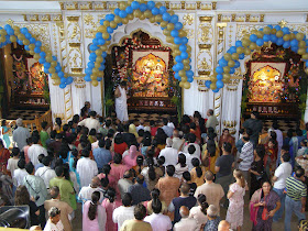 A la llegada al templo, los representantes de ISKCON tuvieron un breve darshan, encuentro con las deidades del templo, y luego fueron conducidos a las habitaciones de SNM.