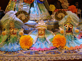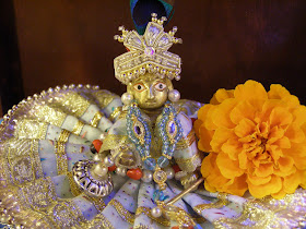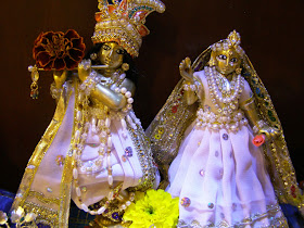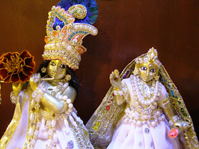 "One who is extremely fortunate may get the mercy of Caitanya Mahaprabhu. As much as one can devote his full attention to the lotus feet of Lord Caitanya, to that extent he will be able to taste the nectarine service of the lotus feet of Srimati Radharani in Vrndavana. The more one engages in the service of Sri Caitanya, the more one finds oneself in Vrndavana, tasting the nectar of the service of Sri Radha." (Caitanya-candramrta 88)