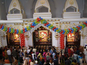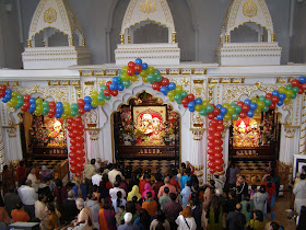On Janmastami Day more than thirty-five hundred people came and took darsan of Sri Sri Radha-Vinodabihariji, listened to hari-katha and honored maha prasadam. Sri Nandotsava and the Appearance Day of Srila A.C. Bhaktivedanta Svami Prabhupada were celebrated on the next day, with a maha-prasadam feast of twenty-two preparations distributed to all the faithful participants.