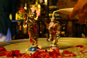 Lakshman (das) Vrindavan (IN): Maha Kumbha mela-2010 at Haridwar has been started with millions of people devoted to mother Ganga and followers of our great Indian Vedic culture. It has inaugurated with the first bathing of saintly persons called naga swami. There is thousands of camp from all over the India called “Akhada”. Each and every Akhada has their prominent Mahamandelshwar swami who is a chief of the Akhada. At this such crowed and holy place called Haridwar, our International Society for Krishna Consciousness ISKCON had build up the big ISKCON camp in Haridwar headed by HG Sreshstha Prabhu. On the occasion of the “Mahakumbh Shahi Snana” on the day of mahashivaratri 12th feb. 2010 all devotees from ISKCON camp had a sankirtan procession with our beloved Srila Prabhupadas Deity on bullock cart. Devotees with chanting the holy name, joyfully took Srila Prabhupada to shore of mother Ganaga. HG Sreshstha Prabhu who was leading this sankirtan procession along with devotees took Srila Prabhupada into Ganga for bathing. Then all the devotees return back with the same sankirtan procession to our camp. Delicious Prasadam was arranged for all devotees in ISKCON camp.