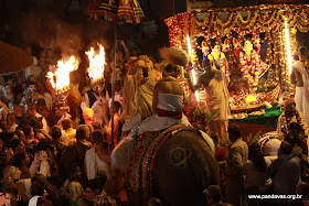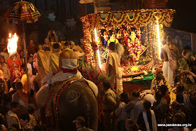 Outro ponto alto de Mayapur é o templo especial de Jagannatha que lá encontramos (fotos acima). Essas Deidades foram manifestadas para um contemporâneo de Sri Chaitanya Mahaprabhu, chamado Sri Ganguly. Ele todos os anos ia visitar Sri Chaitanya em Puri, para participar do Ratha Yatra lá (veja aqui <http://pt.krishna.com/main.php?id=396> ). Mas a idade avançou e ele ficou impossibilitado de fazer a viagem. Ele lamentava-se profundamente